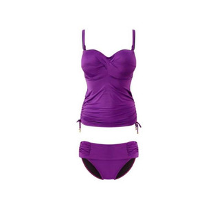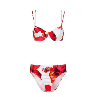 Top: Lo ideal es usar un bikini strapless o bandeau. Esto dibujará una línea horizontal en el busto, dando la sensación de anchura en esta zona. Busca darle volumen a la parte superior con estampados coloridos o detalles como vuelos.
