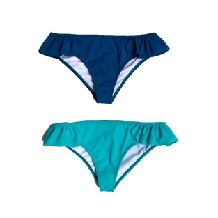 Bottom: Elije modelos de trajes de baño con cortes pequeños y detalles para dar volumen a tus caderas. Puedes usar vuelos, tiras que se ajusten a los lados, estampados etc. Fíjate que tenga un corte alto para que tus piernas se vean más largas y forme tu cadera.